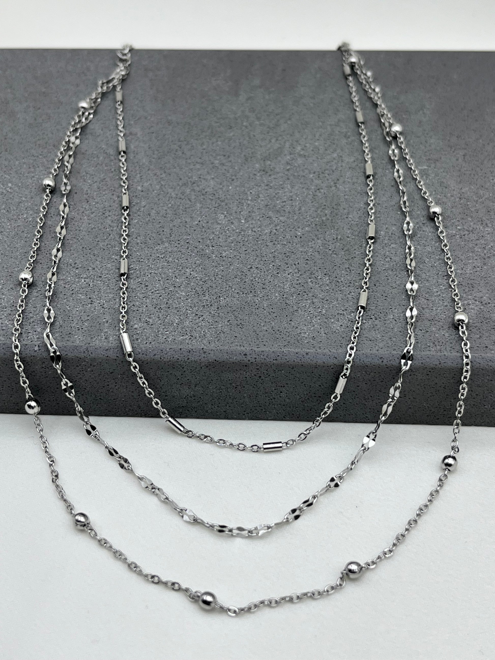 Modern çizgilerle tasarlanmış çelik kombin kolye, sade şıklığıyla dikkat çekmek isteyenler için ideal. Dayanıklı çelik materyaliyle uzun ömürlü kullanım sunarken, katmanlı yapısı sayesinde tek parçada kombin hissi verir. Hem tek başına güçlü bir duruş sergiler hem de farklı kolyelerle rahatça tamamlanabilir.