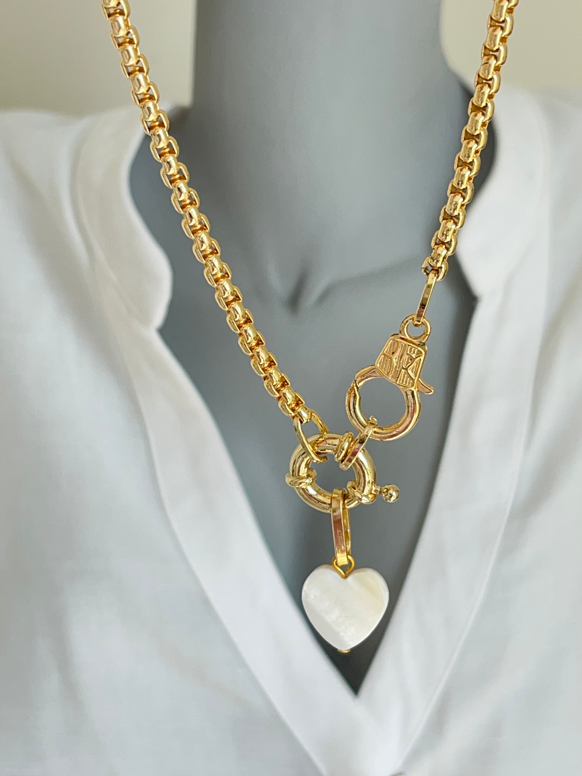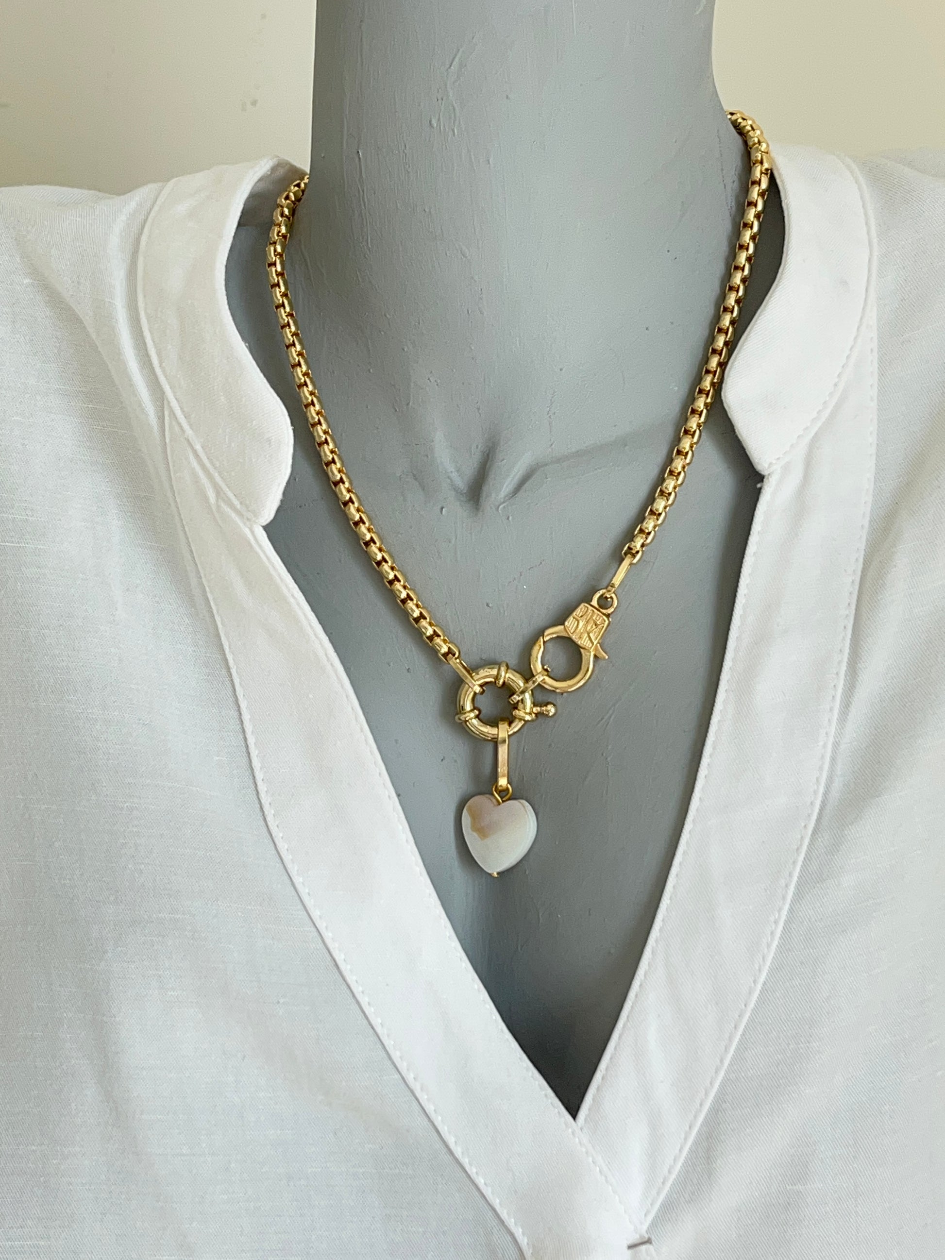 Vip kalite 18k kobra zincir gemici düğümlü Sedef kalpli lüks kolye