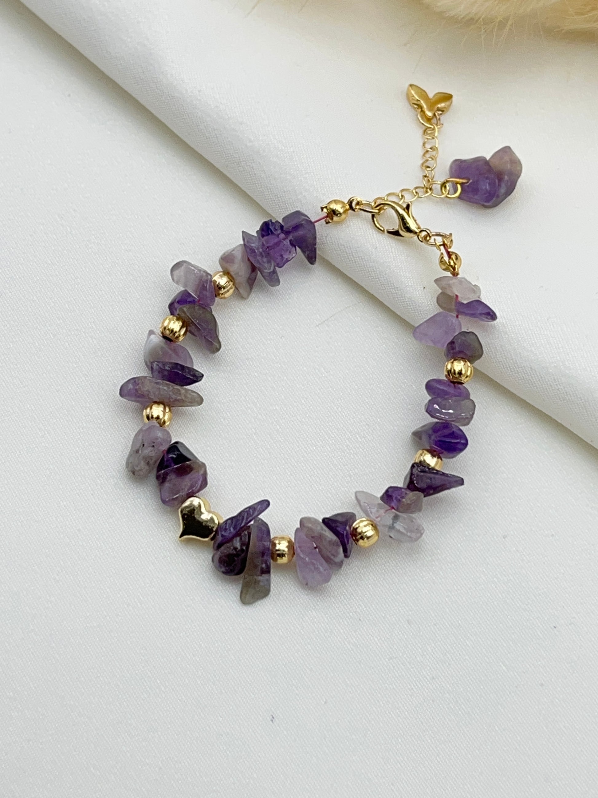 Doğanın en büyüleyici taşlarından biri olan ametist ile tasarlanan Amatis Bileklik, hem şıklığı hem de ruhsal dengeyi bir araya getiriyor. Mor tonlarının huzur veren etkisiyle her stile uyum sağlar; aynı zamanda negatif enerjiyi uzaklaştırdığına inanılır. El işçiliğiyle özenle dizilen taşlar, doğal yapısı korunarak modern bir tasarım Oluşturulmuştur