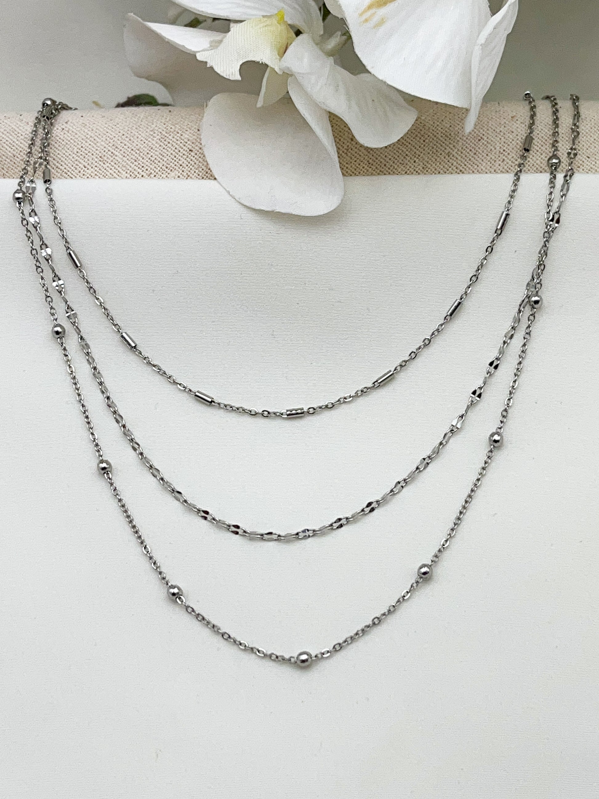 Üç sıra çelik zincirin modern ve güçlü duruşunu, gümüş rengin zarafetiyle buluşturduk.