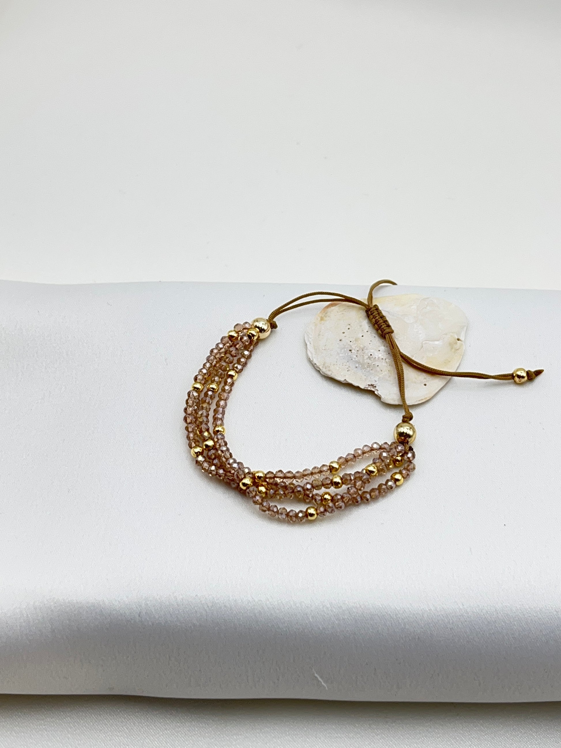Çok sıralı kristal bileklik, sade ama etkileyici olmayı seven kadınlar için özel olarak tasarlandı. Birden fazla bileklik takmışsın gibi görünen ama sadece tek bir takıyla şıklığı yakalayabileceğin bu parça, her bilekte kendini gösterir.