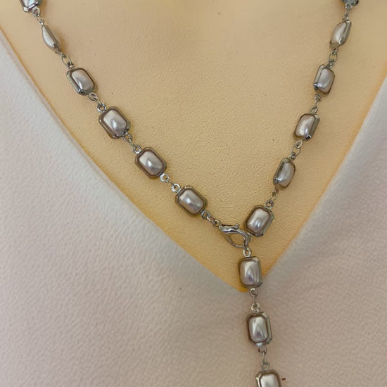Gümüş rengin zarafetiyle parlayan baget formu ve ince işçiliğiyle, bu kolye her bakışta “ben buradayım” diyor.